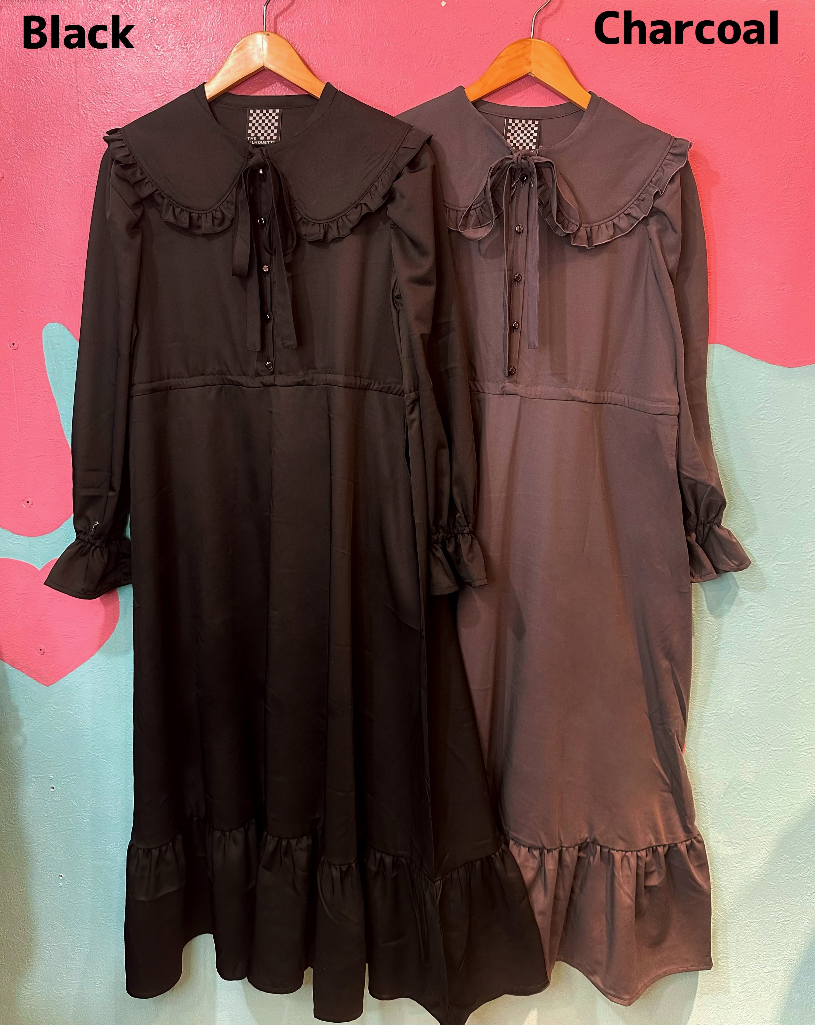 クラシカルな雰囲気漂う、ザ・シルエットオリジナルのつけ襟付きロングワンピース。